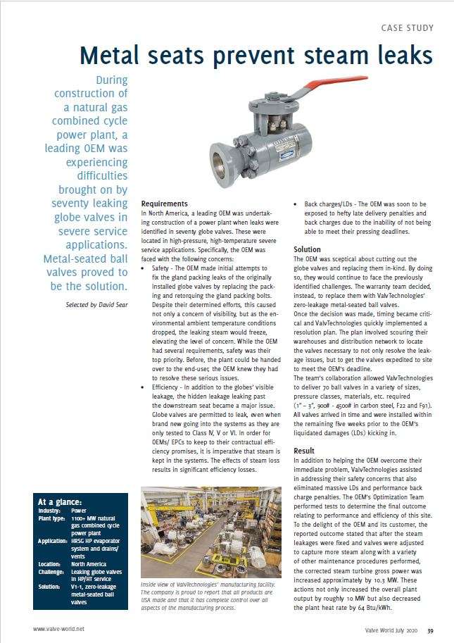 7/6/2020 11:55 AM 68297 Valve-World_Metal-Seats-Prevent-Steam-Leaks_July-2020.pdf